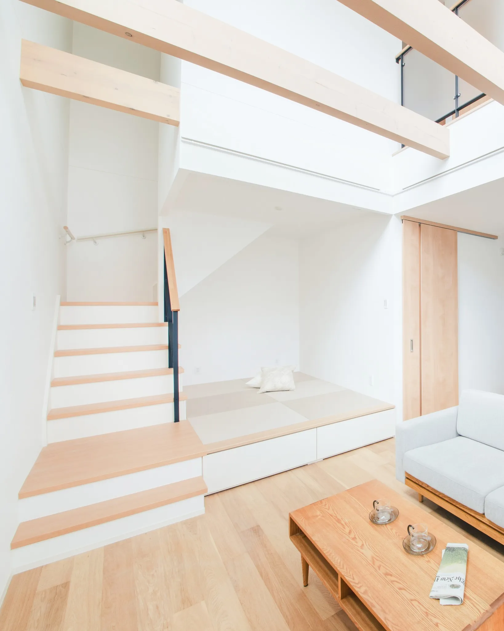 リビング階段の下には小上がりの和室があり、たっぷり収納もできる工夫が嬉しいポイント✨